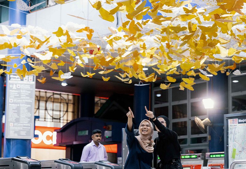 Inilah Dancing Sleeves, instalasi seni terkini inisiatif Arts On The Move (AOTM) oleh Think City, hasil ciptaan artis dan teknologis kreatif Malaysia, Tan Sher Lynn, dan akan berada di hentian transit anda sehingga akhir Oktober ini. Diilhamkan oleh water sleeves yang anggun dalam kostum opera tradisional Cina, karya ini melakar semula pergerakan mengalirnya melalui teknologi digital kontemporari. Apabila anda melihat menggunakan telefon pula, karya ini seakan-akan bergerak hasil teknologi AR (augmented reality).