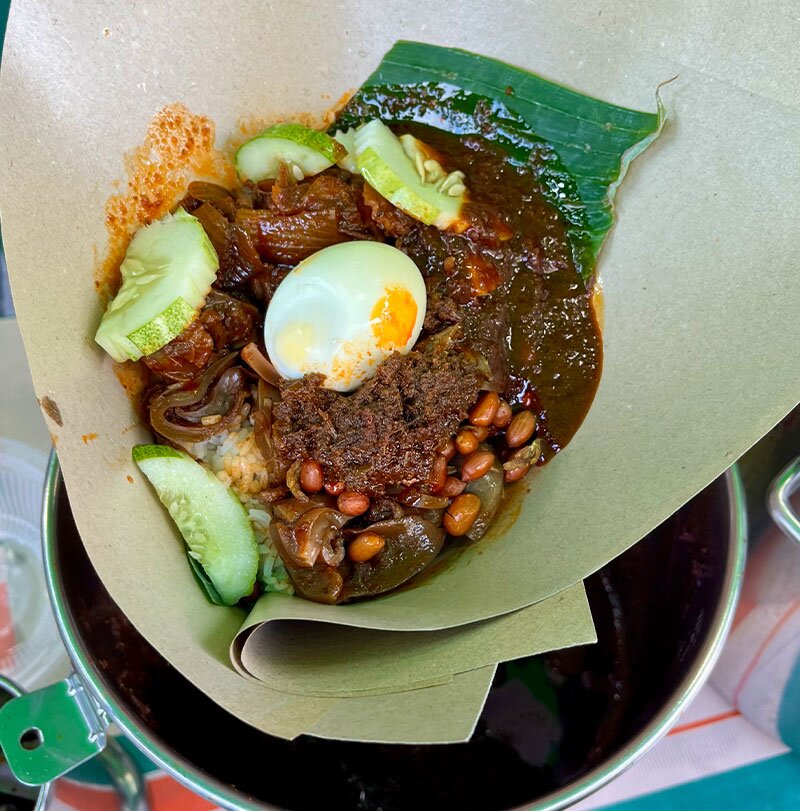 Apa yang boleh dijangka di sini ialah barisannya yang panjang, tetapi saya tak sabar untuk kembali ke Nasi Lemak Alor Corner (@nasilemakalorcorner). Saya sempat singgah ketika bulan Ramadan yang lalu, setiba saya di sana, hanya tinggal sambal kerang dan sambal sotong – dua hidangan baru yang saya tak sangka saya perlukan: lembut, berjus dan sungguh menyelerakan. Pemilik gerai, yang dari kecil membantu ibu bapanya menguruskan perniagaan ini sejak tahun 1982, dengan murah hati menyenduk dua jenis sambal pedas – sambal ikan bilis biasa dan sambal berlado – ditambah sesenduk kuah rendang yang kaya. Inilah nasi lemak kegemaran saya daripada lima tempat yang saya cuba, dan saya tak sabar menanti pembukaannya semula selepas Hari Raya. Pastikan anda datang awal, kerana mereka biasanya habis dijual seawal 11.30 pagi – atau lebih awal lagi!