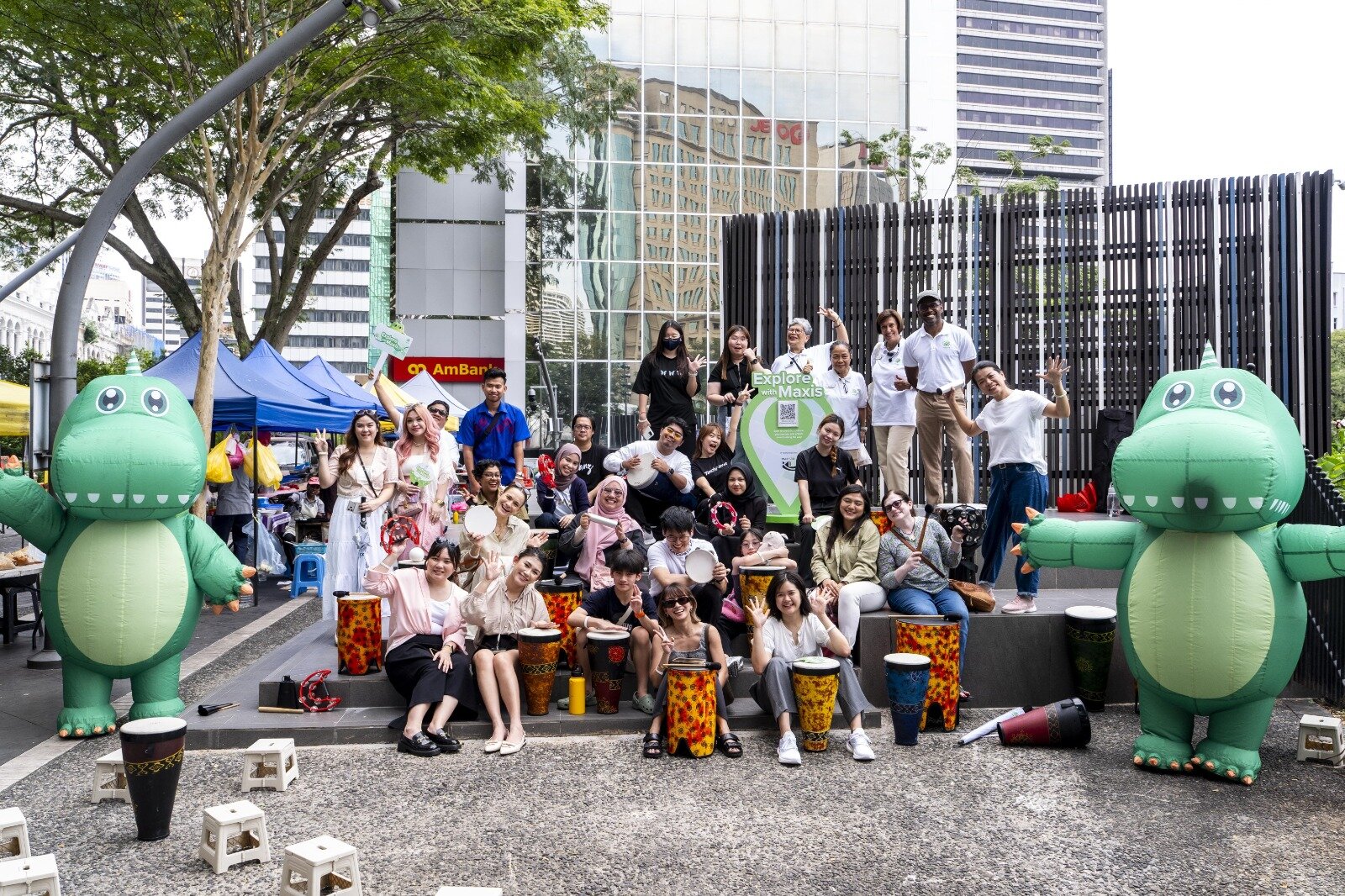 Explore with Maxis offers more than a walk – it creates moments you wouldn’t encounter on your own. From a riverfront drum circle with 1Drum near Masjid Jamek, to (below) a visit to Else Hotel in the former Lee Rubber Building, where a hidden Downtown KL skyline vista is paired with the meditative strains of live gamelan by local ensemble Gangsapura, each stop reveals the city in a distinctly memorable way.